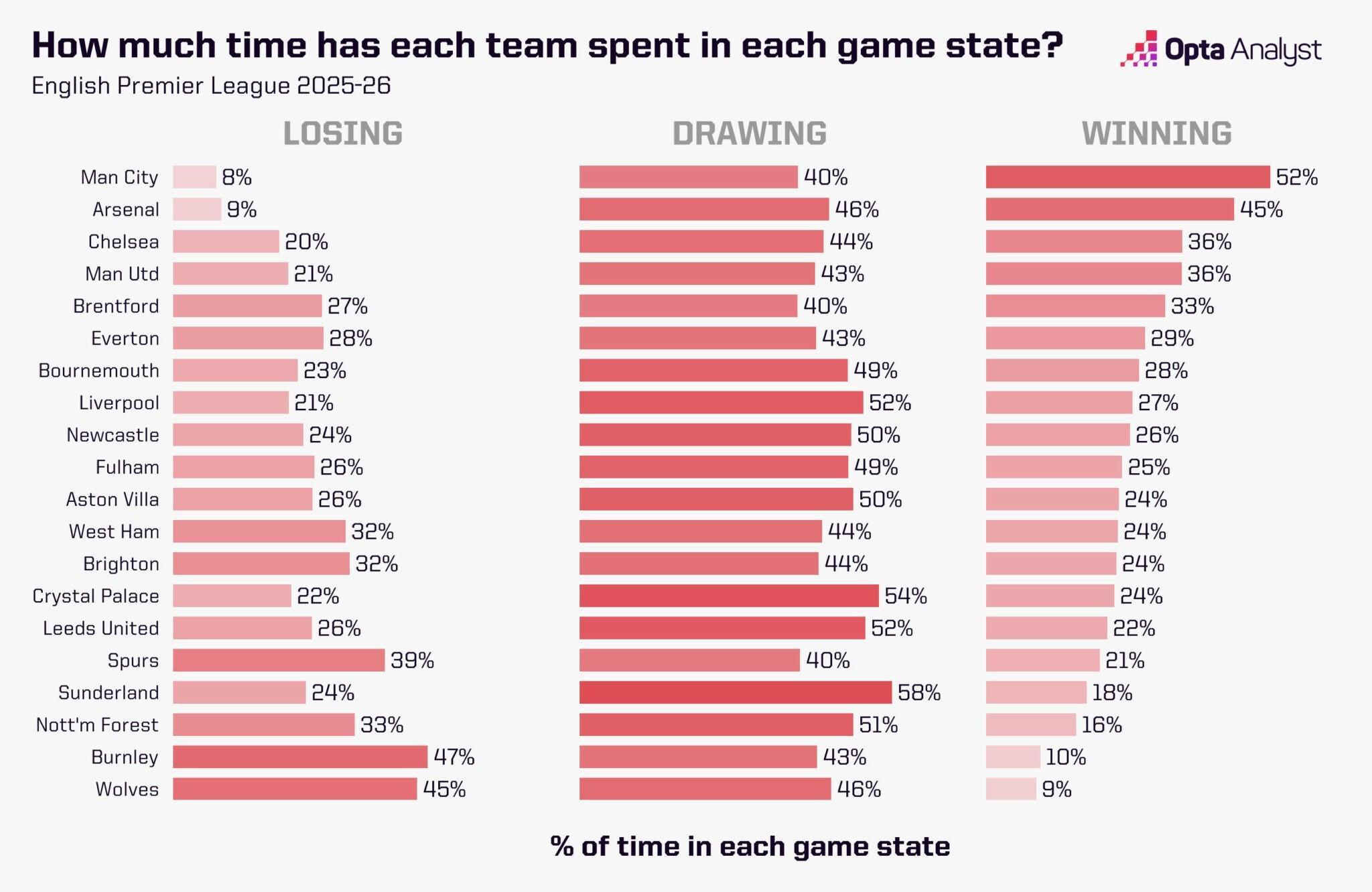 同时,这也是阿森纳本赛季联赛里最长的一次单场拖延时长。他们本场的拖延时间占总比赛时长的30.6%,在2025-26赛季所有英超球队中排名第11。