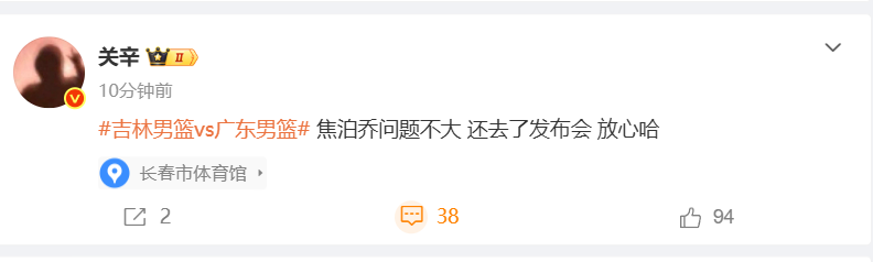 好消息是,焦泊乔的脚伤问题不大,赛后关辛第一时间发布报道,表示焦泊乔问题不大,还去了发布会。