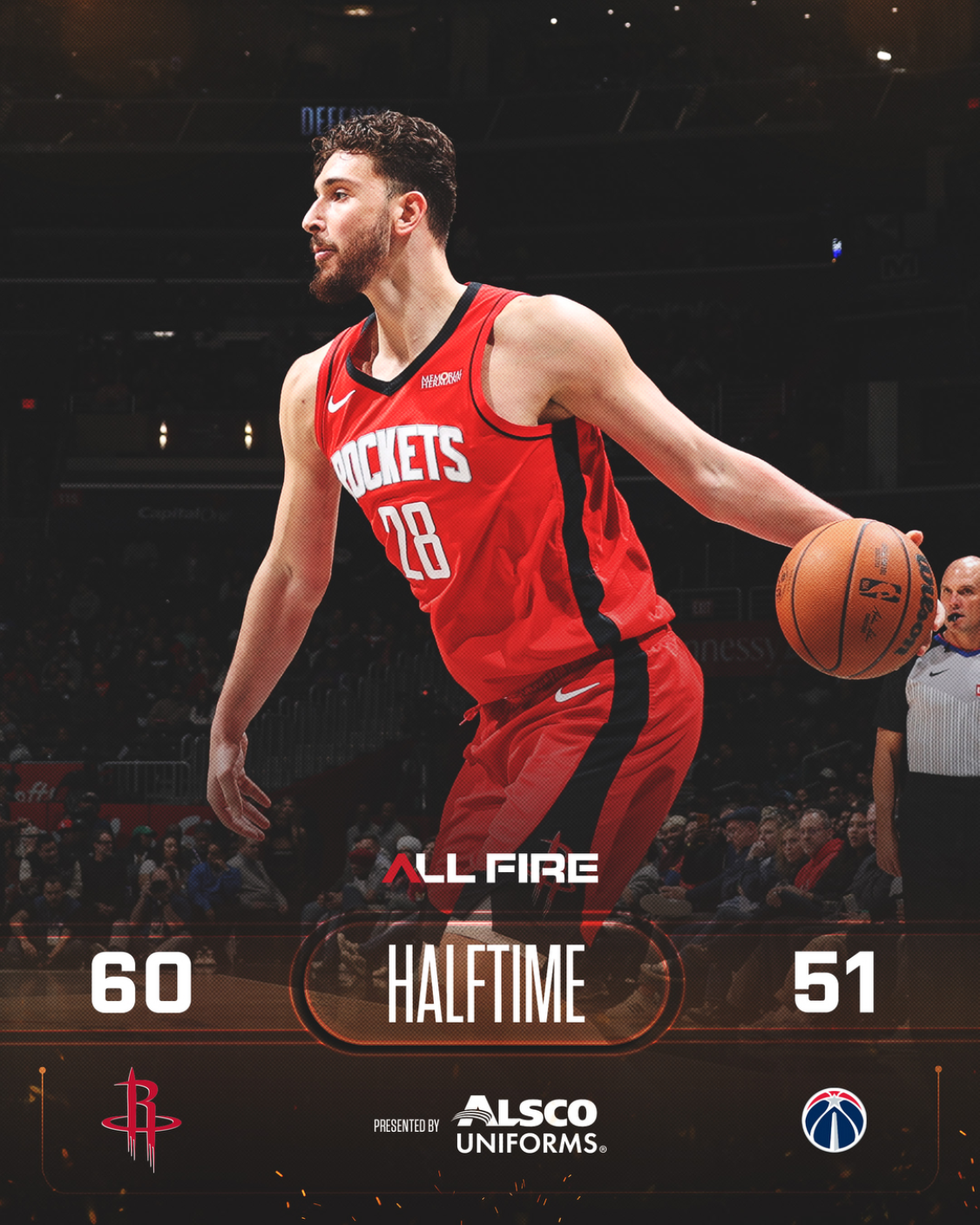 火箭队的申京得到32分和12个篮板,杜兰特得到30分和7个篮板,汤普森得到22分、12个篮板和4次助攻,谢泼德得到19分、7个篮板和10次助攻,伊森得到9分和6个篮板。奇才队的库里巴利得到23分,库珀得到21分,乔治得到16分,哈迪得到14分,尚帕尼得到12分,卡林顿得到11分、5个篮板和4次助攻。
